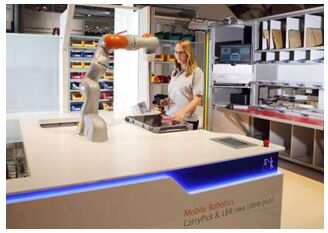 工業(yè)4.0的浪潮正席卷全球,作為全球領先的倉儲及配送解決方案集成商——瑞仕格與母公司KUKA集團聯手開發(fā)了Automated Item Pick機器人揀選技術,將人與機器人協同作業(yè) 的概念引入未來的自動化智能倉庫設計中。KUKA集團的輕型機器人LBR iiwa具有感知能力,可以在不需要護欄的環(huán)境中與人協同工作,并保證人員的安全。機器人與人將實現在同一工作站履行訂單任務,機器人可以連續(xù)不間斷地從事簡單的重復性作業(yè),而人可以從事其他的復雜作業(yè)。瑞仕格展示的Automated Item Pick機器人揀選技術與AutoStore輕載存儲揀選系統(tǒng)集成的概念方案除了提高準確性與揀選效率,這套方案的優(yōu)勢還在于其靈活性、可移動性以及高度的可靠性與安全性。