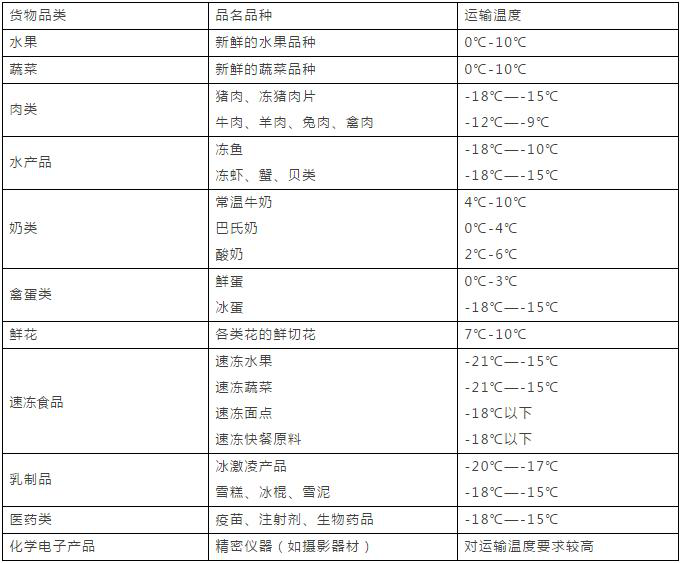 目前,冷鏈物流的適用商品一般分為三類:一是初級(jí)農(nóng)產(chǎn)品,包括蔬菜、水果、肉、禽、蛋、水產(chǎn)品、花卉等;二是加工后的食品,如速凍食品、肉、水產(chǎn)、熟食、冰激凌和奶制品等;三是特殊商品,如藥品和疫苗。和傳統(tǒng)物流相比,冷鏈物流在每一個(gè)環(huán)節(jié)上對(duì)技術(shù)的要求更高,資金投入也更大,已是國(guó)家重點(diǎn)扶持的領(lǐng)域。冷鏈物流的核心不完全是“冷”,而是“恒溫”,因?yàn)椴煌漠a(chǎn)品需要不同的保存溫度(見表2)。