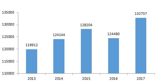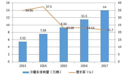 圖4 2013-2017年全國(guó)冷藏車保有量增長(zhǎng)變化圖