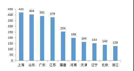 圖6 2017年全國(guó)冷庫(kù)容量城市TOP10(單位:萬(wàn)噸)
