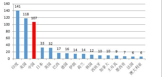 圖9 2016年各國(guó)冷庫(kù)保有量對(duì)比(單位:百萬(wàn)立方米)