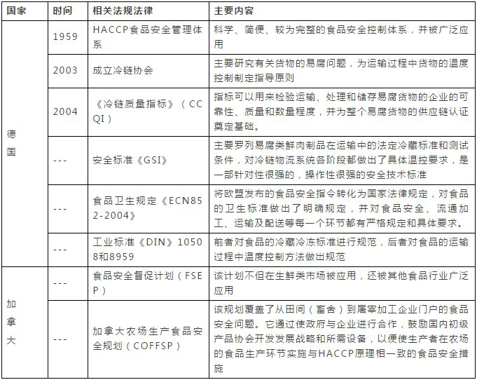 表7 部分發(fā)達(dá)國(guó)家冷鏈物流相關(guān)政策