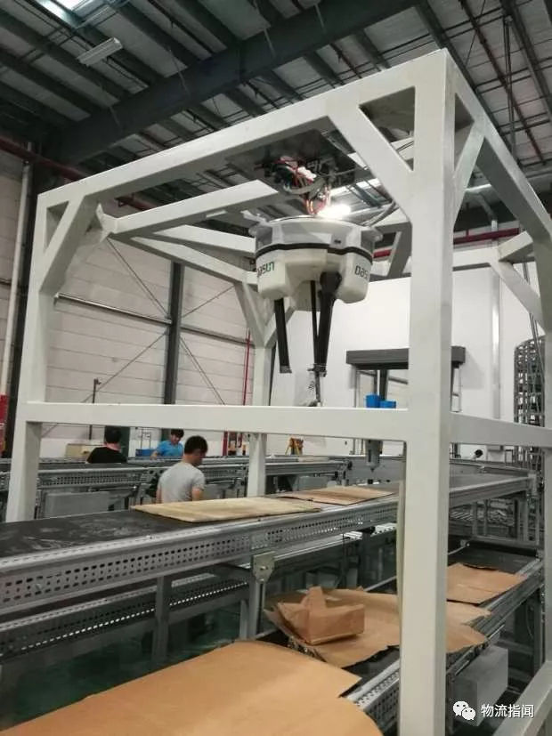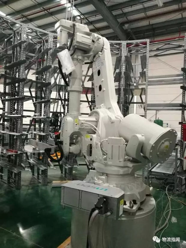 2018年兩會,國家郵政局馬局長在部長通道上特別強調(diào),快遞實名制和快遞信息安全的發(fā)展趨勢,電子面單加密對推動實名制有著重要的價值。 (五)菜鳥各種黑科技: 黑科技現(xiàn)在在全面滲透各種物流場景,在菜鳥的海寧自動化倉庫中,無人技術(shù)應(yīng)用得淋漓盡致。包括自動貼標、自動化包裝機、機器人存儲及揀選系統(tǒng)、以及行業(yè)最先進的機械臂等。 1.緩存機器人: 使用6軸緩存機器人+夾具實現(xiàn)從貨架區(qū)自動揀出物流箱,將物流箱放置在輸送線上至摘果流程。