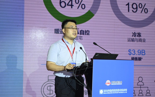 青島海爾開利冷凍設(shè)備有限公司戰(zhàn)略客戶方案部經(jīng)理傅軼駿介紹了青島海爾開利發(fā)展歷程,開利全球業(yè)務(wù)以及海爾開利并聯(lián)機(jī)組產(chǎn)品。