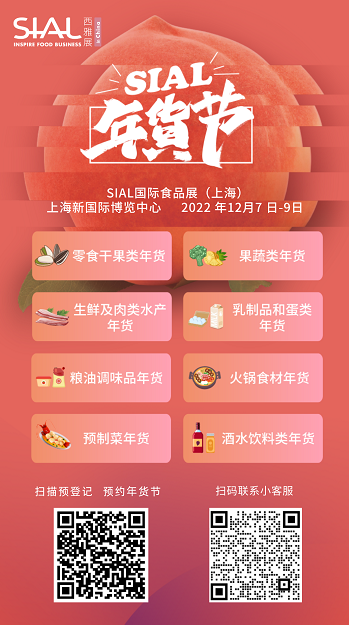 0門檻 多權益 SIAL年貨采購節(jié)提供更多貿易機會 本次SIAL年貨采購節(jié)活動面向食品餐飲行業(yè)商家和買家雙方,將采用最簡便的參與方式,最大限度方便商家和買家參與。 展商參與方式為:登陸SIAL國際食品展(上海)官方網站展商服務中心——完善展商信息和展品信息——登陸“客戶邀請”欄目,下載訂制化海報邀請買家。 展商完善自身信息和展品信息后,即可0門檻入駐SIAL年貨采購節(jié)專場,并獲得SIAL全渠道營銷曝光,以及在SIAL國際食品展(上海)展會現(xiàn)場對接海量優(yōu)質買家。如展商上傳自身品牌新聞,還可免費獲得來自SIAL全渠道營銷的SEO服務,提升自身品牌的網絡曝光率,獲得更多貿易機會。 買家參與方式為:打開SIAL國際食品展(上海)官網、SIAL在線小程序或官方微信公眾號(SIAL China國際食品展、SIAL全球食品系列展)——選擇“我要參觀”,填寫參觀信息。 成功報名的觀眾,將獲得SIAL國際食品展(上海)價值199元門票1張,并可以在官網或小程序直接點擊意向展商,獲得1V1匹配的機會。在SIAL國際食品展(上海)現(xiàn)場,還有機會贏取年貨大禮包。 SIAL年貨采購節(jié)將基于SIAL國際食品展(上海)12大主題館、21大展品類別,結合年末食品餐飲采購消費全場景需求,將入駐的展商和展品分為零食干果類年貨、果蔬類年貨、生鮮及肉類水產年貨、乳制品和蛋類年貨、糧油調味品年貨、火鍋食材年貨、預制菜年貨、酒水飲料類年貨等八大品類,為商家和買家采購選品提供方便。