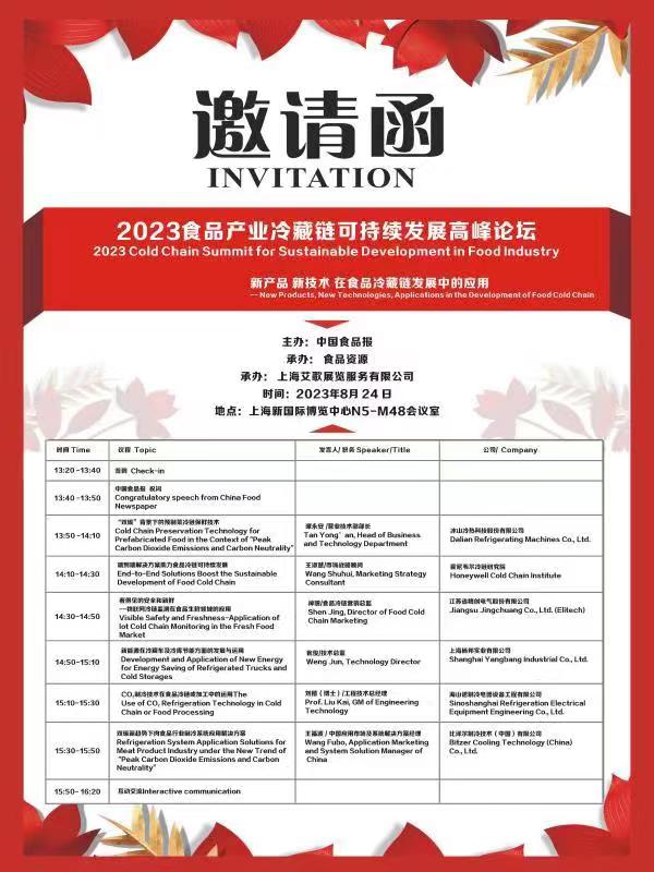 2023食品產(chǎn)業(yè)冷藏鏈可持續(xù)發(fā)展高峰論壇 2023 Cold Chain Summit for Sustainable Development in Food Industry