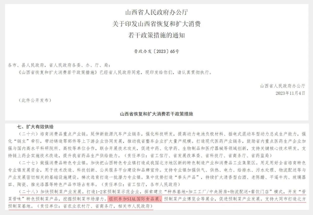 能渡過洶涌浪潮,才能真正踩著風口起飛。SIAL西雅展洞察行業(yè)趨勢,愿以國際平臺助力行業(yè)高質(zhì)量發(fā)展。在23年滬深雙展中,整合來自原材料、供應鏈、線下餐飲、方便食品/半成品等多領域預制菜頭部企業(yè)現(xiàn)場參展,同時廣泛邀約線下商超、電商平臺、餐飲酒店、茶咖/輕食店、便利店等預制菜全渠道目標客戶群現(xiàn)場選品,為預制菜供需雙方提供“一站式”商貿(mào)對接服務,成績斐然,獲得了多方認可。在23年11月,山西省人民政府辦公廳出臺的《山西省恢復和擴大消費若干政策措施》中,重點提及“組織參加SIAL國際食品展……促進預制菜產(chǎn)業(yè)發(fā)展”。
